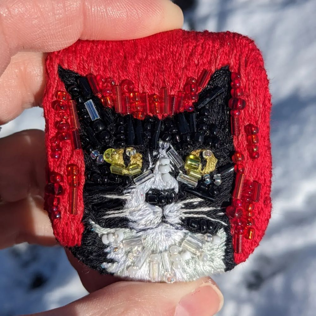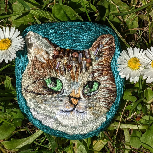 Prices start at £60.00 for a piece _ cm in diameter. The piece can be made to hang on the wall or to be used as a brooch.
