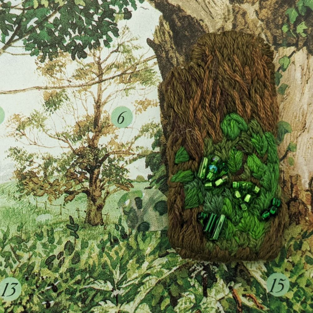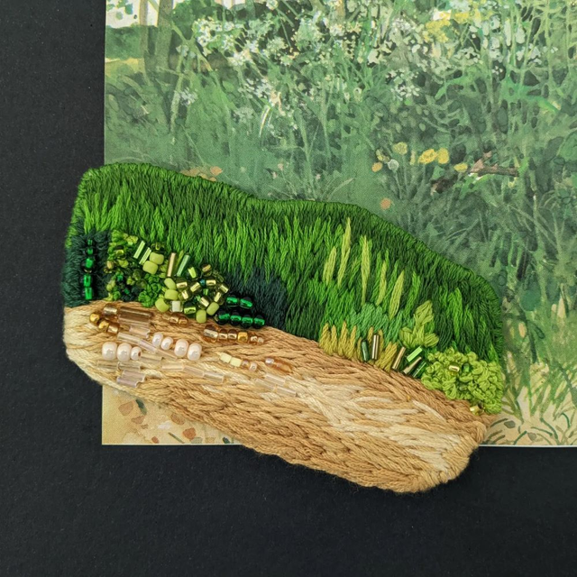 collage with embroidery and beading on card, 42.3 x 30xm, original, unframed